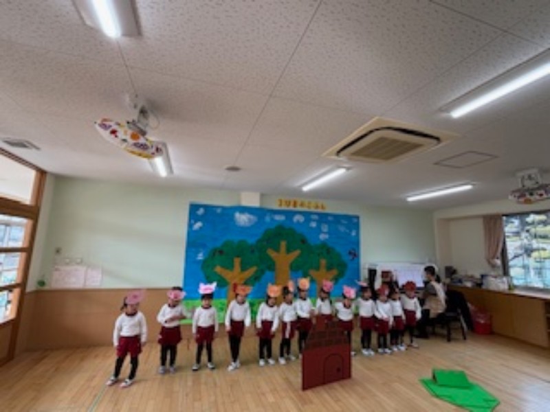 お知らせ 年少組の劇遊び参観でした。 2026.02.05 今日は年少組のひまわり組さんとたんぽぽ組さんの劇遊び参観でした。 今まで一生懸命、お友だちとセリフや歌、振りの練習をしてきました。お友だちと一緒に声を合わせて上手に発表できましたね。お家の方も、嬉しそうに子ども達の劇をご覧になっていました。 一覧へ戻る